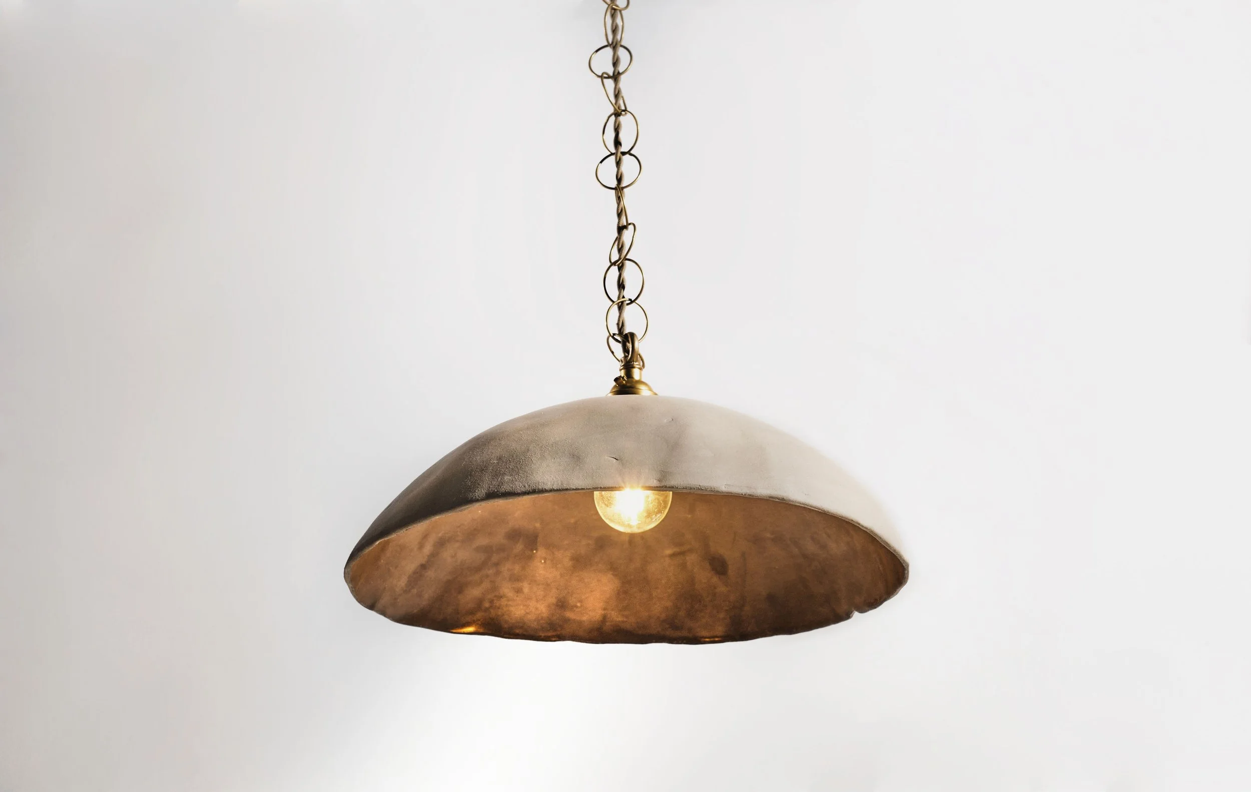 He believes that when working with clay the artist imprints a part of themselves into the work. The final piece is a “snapshot” of that interaction between the artist and clay, which gives each piece its own identity. No two interactions are the same, so no two pieces are the same. Similarly, the hardware he pairs with the ceramic often features unfinished metals, so that it may age and take on a story from the environment in which it's placed.